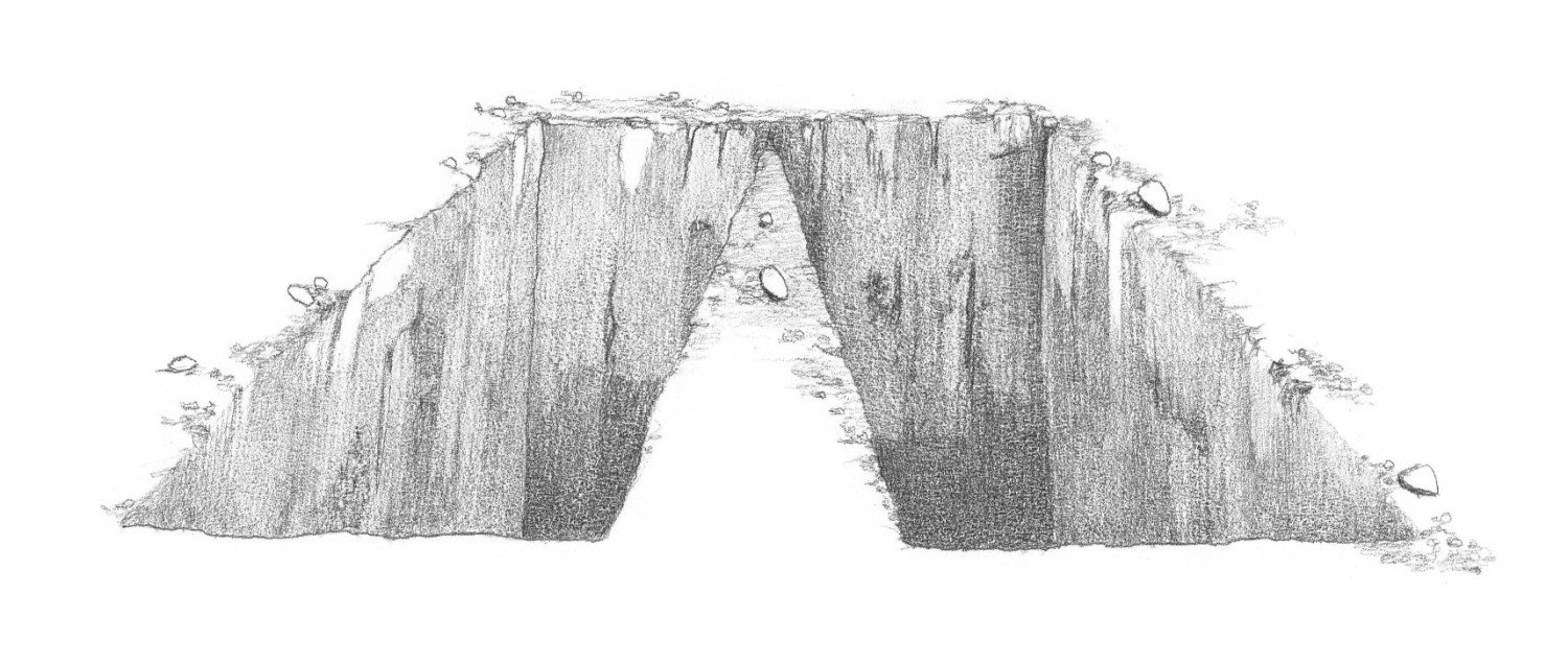 El primer dibujo de Mariana Sissia que alguna vez vi mostraba una excavación, un hoyo que se presumía profundo, representado de manera fidedigna en el plano, es decir, en el terreno, emplazado en el extremo de un eje diagonal que se completaba, un poco más arriba, a la izquierda, con la perfecta plasmación del túmulo de tierra producido al excavar, separado apenas del otro motivo. Además del llamado de atención que provocaba su innegable calidad, más destacable aún por la juventud de la autora, el dibujo me hizo pensar que la dirección natural de la lectura parecía oponerse al acto ya ejecutado de la excavación, dado que generaba una tensión de la tierra hacia el hoyo, como si una fuerza tácita la indujera a volver a rellenarlo, efecto subrayado por la gravitación del pozo en la composición. Esa inducción cinética establecía una conexión con las paradojas de la representación, y Sissia comenzaba, así de tempranamente, a reflexionar sobre los dilemas de su propio métier –tanto en lo que hace a la construcción de la imagen como al ejercicio activo del dibujo–, bajo la forma de una velada alegoría, o bien como una intencionada metáfora.