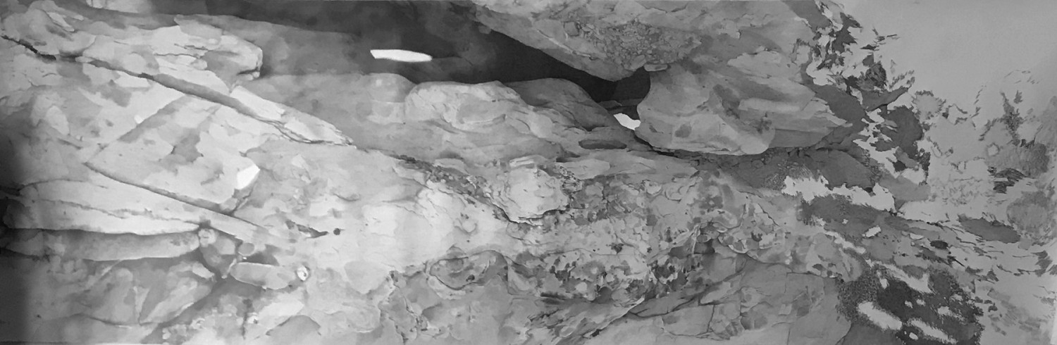 En estos ejemplos el factor teatral, la marca dramática, la concordancia de otras lógicas a un tiempo progresivas y destructivas se filtran en los recortes, huecos, mordeduras, placas y laderas pétreas, y en los segmentos regulares que en los títulos de los dibujos se identifican como túneles, cuevas, cavernas, paredes. La artista se desliza hábilmente entre amagues fantasiosos, insinuaciones y resonancias, y de repente nos parece estar frente a un documento protocientífico destinado a graficar la arquitectura de hormigueros o nidos de termitas, bajo la inquietante sensación de escudriñar madrigueras o cuevas de animales; o bien recorriendo un inventario de obras en construcción, el cuaderno de apuntes de un ingeniero.