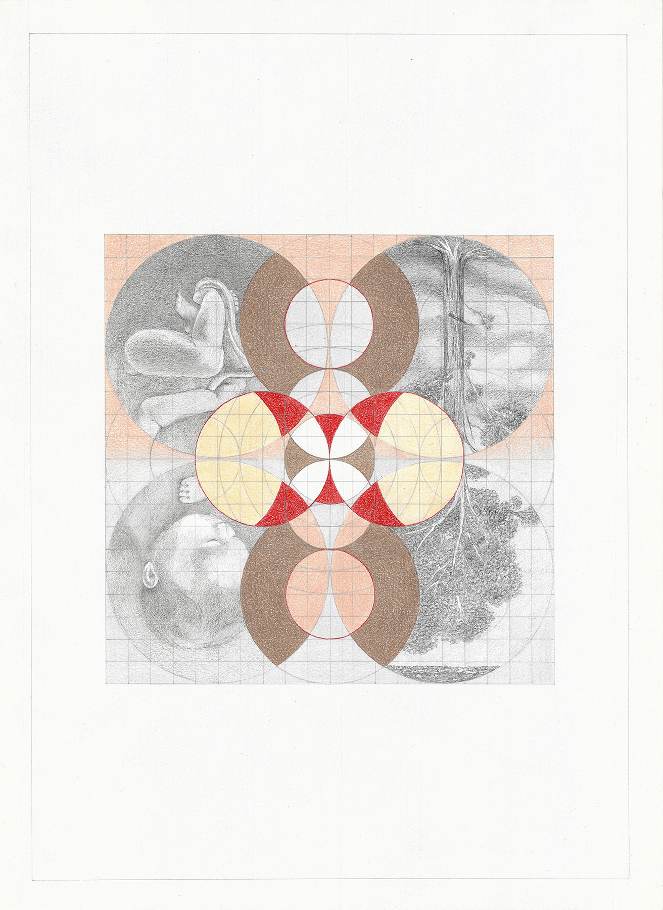 Ese territorio, trazado como resultado de una colaboración entre las piezas, crea un apoyo conceptual para la artista. En La Conjunción, ella busca los pares opuestos conjugados: el hiperrealismo despuntado por la abstracción, que a su vez se mueve al ritmo del grafito puro colocado sobre el papel y viceversa. Se trata de una operación de reconciliación entre distintas partes, que construye la cosmovisión de Sissia y accede, en términos Jungianos de la conjunción, a algo similar a un rito religioso, un otus divinum. Ese estado, donde la materia logra condensar en espíritu, o, en este caso, donde lo etéreo se materializa a través de la obra, es el espacio sacro de su producción.