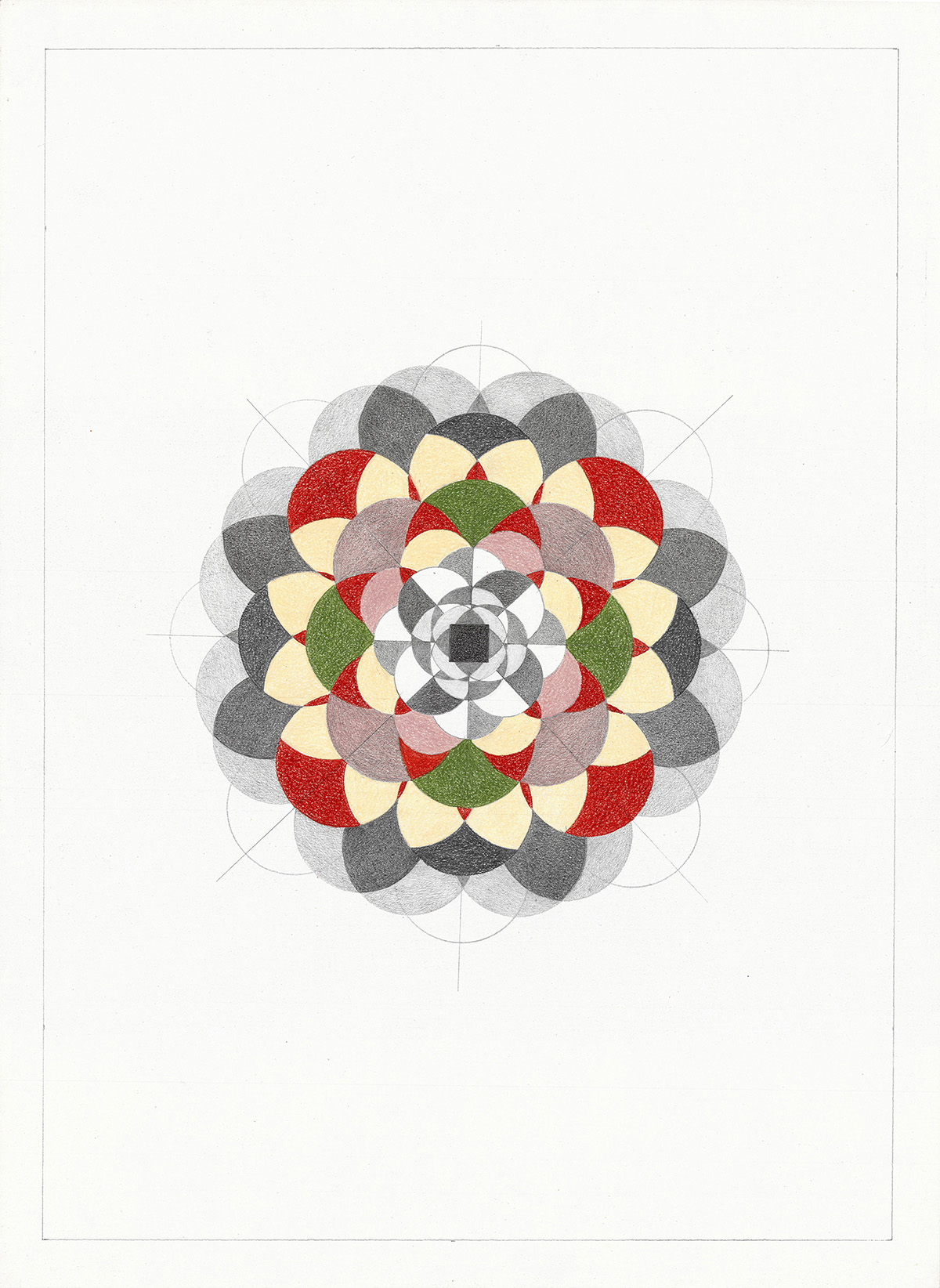 Las imágenes obtenidas tocan de distintas maneras la idea del origen, del principio de la forma y de la materia. Las formas circulares, presentes en la serie de los mandalas o en varios grafitos, nos recuerdan a la forma perfecta, o a los dibujos encontrados en bajorrelieves que datan de tiempos inmemoriales. Por otro lado, esas imágenes primarias también están presentes en las explosiones de color en medio de fondos negros. Las texturas emergen del papel como si siempre hubiesen estado ahí, y Sissia las ayuda a brotar hacia la superficie. Paisajes que parecen ser un big bang: un antes que todo, un antes que nada.