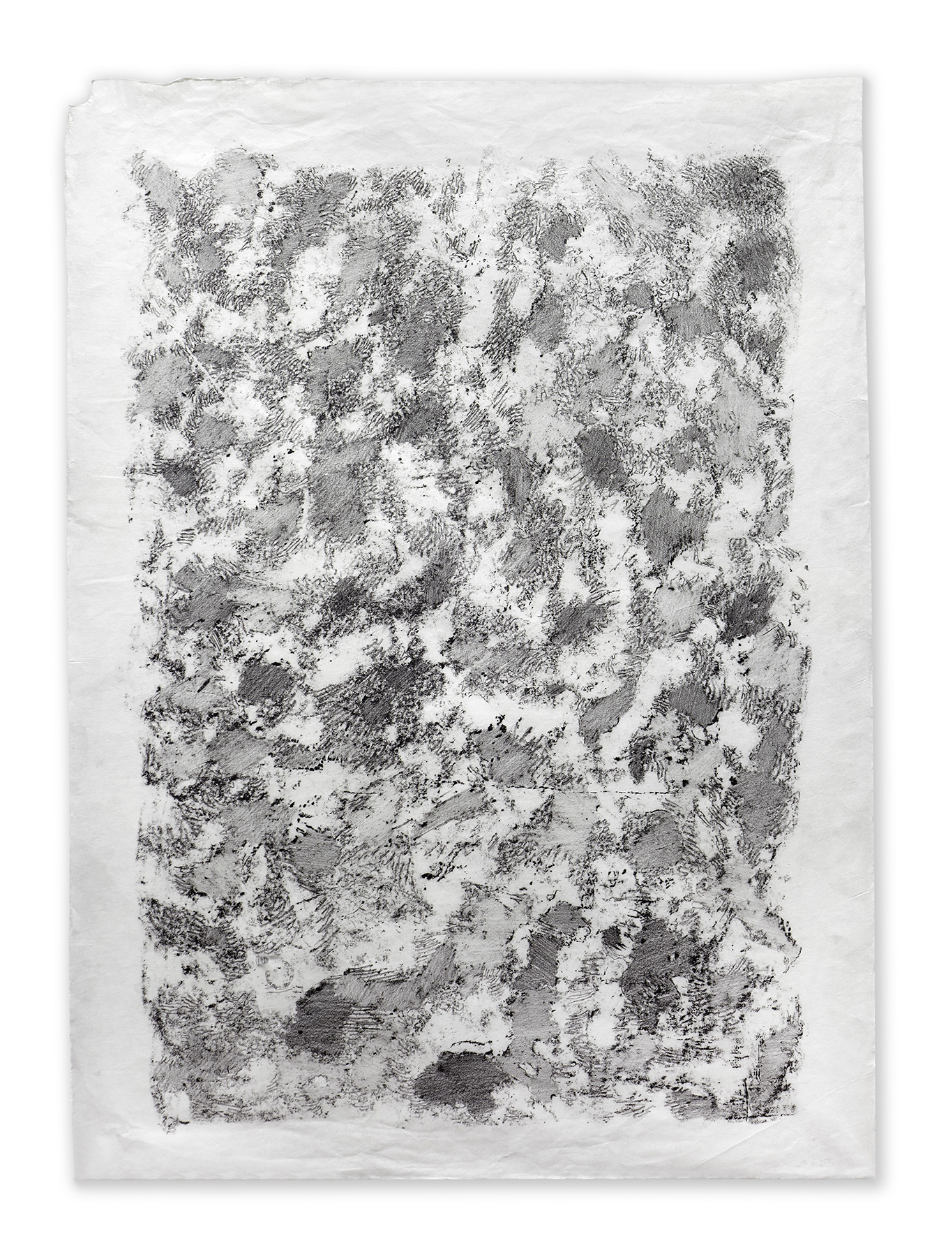TDS: Si, yo diría que cada vez dibuja más momentos que figuras, instancias temporales de estar en ese momento y de esa manera. Lo que va predominando es una imagen más austera y menos representativa, las obras se vuelven más un registro de texturas, una vista aérea cada vez más distante donde ya no se ve la montaña si no su textura. Por momentos son una acumulación de restos y de repente, son como pequeñas excavaciones en un terreno absolutamente árido, donde ya no tiene valor hacer ninguna representación puntual. Por eso se excede y cada vez se vuelve más inapropiado hablar de paisajes. Porque lo que ha venido haciendo, es ir demoliendo todo resto reconocible de representación y lo predominante es el vínculo fuerte con la materia y la representación de la experiencia real de representar. Como una experiencia desnuda del dibujar mismo, cada vez más cruda, más directa y sin rotura, diría. Cada vez se refuerza la idea del continuum, donde ya casi no queda tiempo para el detalle.