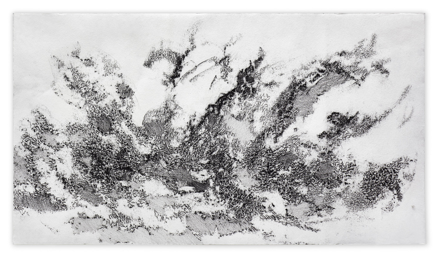 Aun cuando exploramos este entorno complejo con un intrépido sentido de la aventura, nos vemos llevados a una lectura más psicológica del paisaje. Delicados dedos parecen haber impreso sus huellas en mil lugares sobre la superficie de cada dibujo, pero, ¿cómo leemos la evidencia que han dejado? Asimismo, la confluencia de forma y textura se resuelve, a veces, en un test de Rorschach casero y meticuloso. Con mano traviesa, Sissia crea confusión entre el aleatorio sentido asociativo de la mancha de tinta y la significación visual, cuidadosamente articulada, asignada por un artesano. Las materias primas del mundo desbordan de sentido, cultural, espiritual y personal: estanques de agua se funden en figuras, ventanas manchadas parecen revelar repentinamente la huella de la mano de Jesús. Las superficies de los dibujos de Sissia parecen ser el perfecto reflejo de cien formas de significación. Cada día, lo que nos rodea parece preguntarnos: “¿Qué ves? ¿Qué te cuenta lo que ves? ¿Cómo lo lees?”. La artista parece sugerir que, en estos dibujos, esa contemplación es compartida: ella nos invita al fluir de su conciencia, que el trazo y la textura han vuelto visible. Como Hamlet, observamos las nubes que pasan, asiéndonos de cualquier sentido que puedan ofrecernos antes de que desaparezcan de la vista; reconociendo que todo podría ser una aparición producida por una mente activa, pero que no por ello es menos significativo.