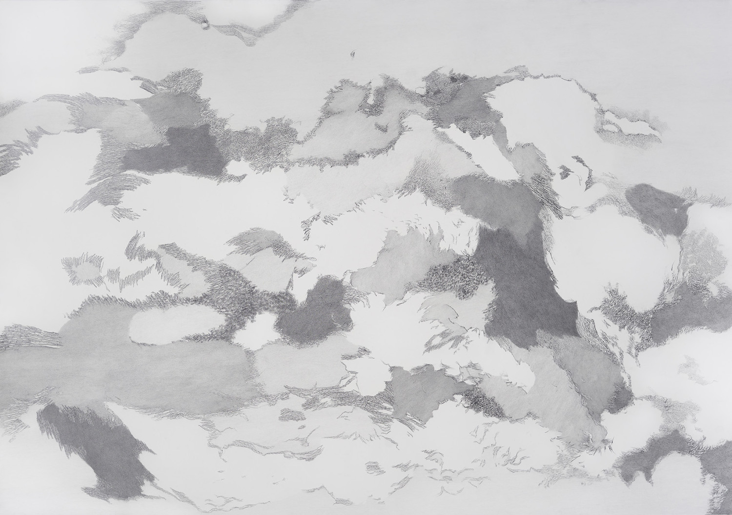 En tanto que extensión en el espacio, la línea también es extensión en el tiempo. No el tiempo en el sentido de medida de una duración finita, sino más bien el tiempo que sencillamente prosigue ad infinitum. En los nuevos dibujos de Mariana Sissia, que ella nombra Paisaje mental, lo que encontramos no es un lugar o un punto, sino una concepción en la mente. En esta serie, la artista persigue un orden que no se puede captar de manera apresurada. Es el orden de las emociones y las sensaciones, algo similar al contacto sensible con la propia piel, el propio cabello, el propio cuerpo. Los dibujos de Sissia no son una “cosa”, sino un estrato de una cosa que propone un orden, un orden que el papel es capaz de contener. Su espacio es al mismo tiempo físico y abstracto. Se trata tanto de la materia como de los materiales, y de escapar, precisamente, de la condición de cosa. Con una dedicación, una paciencia y una cautela extremas, Sissia crea dibujos sobre papel de arroz a la manera de grandes rollos. Este material, muy fino, conocido por su uso en la pintura china del siglo XIX, es delicado y carece de textura. Sissia comienza por aplicar el frottage, una técnica gráfica desarrollada en 1925 por el surrealista alemán Marx Ernst, a fin de crear una base para un mayor refinamiento. Sissia frota superficies texturadas, tales como pisos de cemento, paredes y piedras, que a continuación intensifica marcándolas con grafito de diferentes escalas. Su método, al que ella se refiere como “temperamental”, construye lentamente un paisaje que se va desplegando según la energía diaria de la artista. Estas escenas apasionadas son investigaciones del material, que asemejan masas de aire o trozos de cielo, es decir, dominios etéreos. Los cielos de Sissia recuerdan aquellos que el artista argentino Osvaldo Bony creaba a mediados de los años 70. Aunque pueda parecer un tópico banal, el cielo se convierte en una intensa metáfora de la libertad. Sissia, al igual que Bony, desprende los cielos, separándolos del infame mundo de las figuras. Aquí, la materia alcanza la clase de complejidad que encontramos en el cerebro humano. De manera comparable a esa postura filosófica o creencia que sostiene que la consciencia es una cualidad universal de todas las cosas, Sissia intenta extenderse ella misma a todo lo que la rodea, y trabajar con los problemas y acontecimientos que ello le presenta. Se torna consciente de su propio cuerpo, en una forma que nada tiene que ver con la idea aceptada del autorretrato, sino con el cuestionamiento y la observación de las sensaciones. La ausencia de figuras y de cuerpos humanos en los paisajes provoca una sensación de “pérdida de contacto”, no sólo con nosotros mismos y con los demás, sino también con la cultura de la que formamos parte.