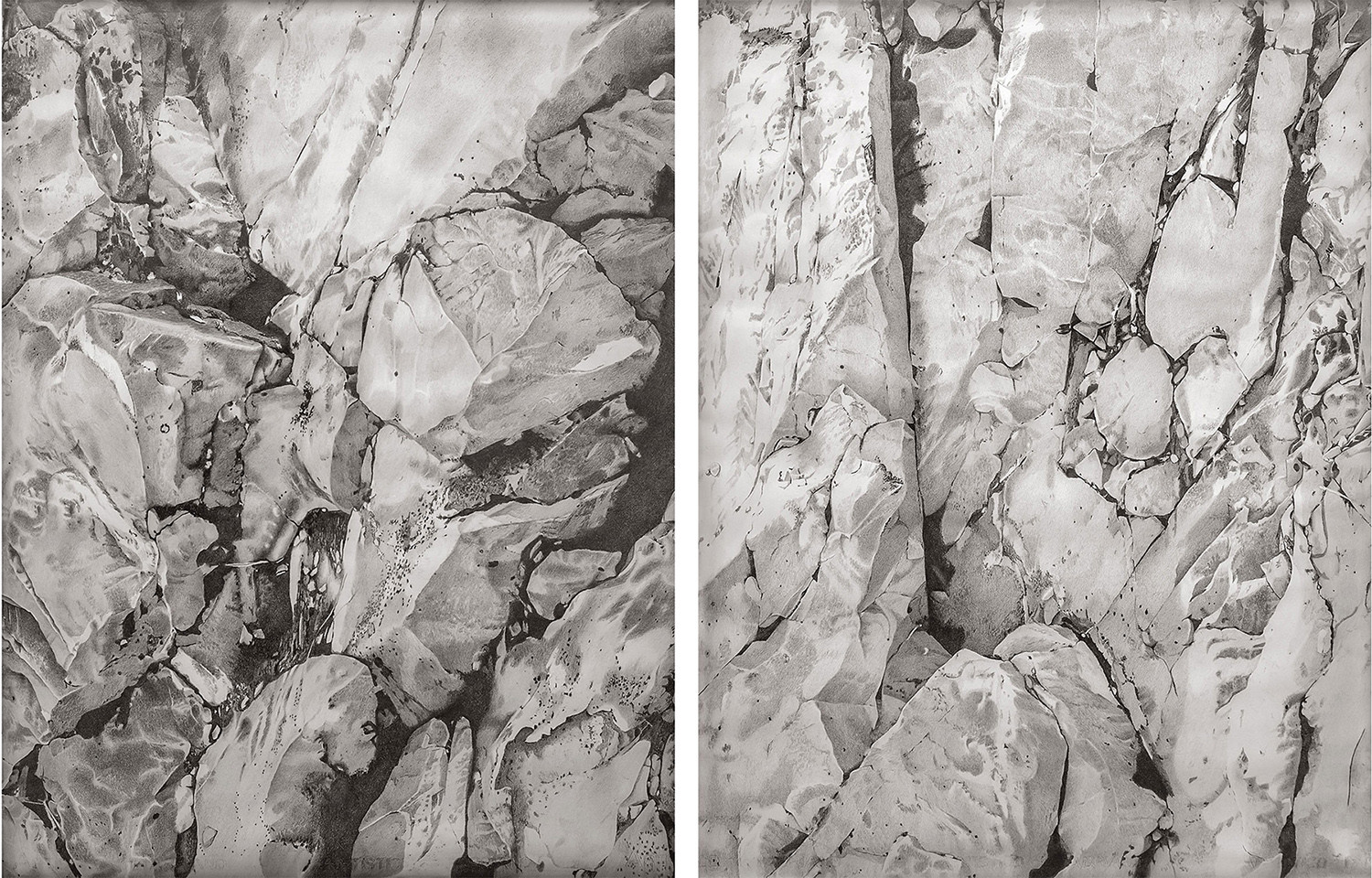 Los dibujos realizados entre 2018 y 2023 de alguna forma abarcan toda la producción de Mariana. Figuración y abstracción se reúnen en total armonía, como opuestos complementarios. Aquí, los encuentros entre percepciones no se desafían, sino que plantean una búsqueda de equilibrio entre la razón y la espiritualidad. La aproximación entre esos universos, no son más que un recurso para hacer visible lo invisible, verter el estallido interior en el papel y transformar la introspección en una descarga de grafito. Frente a algo tan sagrado como es el encuentro con la obra, la artista plantea distintas formas de comprenderla. Estos conceptos, primarios, originarios para la humanidad, son puestos al servicio del dibujo, el lenguaje fundamental del arte, aquel que retiene las ideas y las ayuda a aparecer.