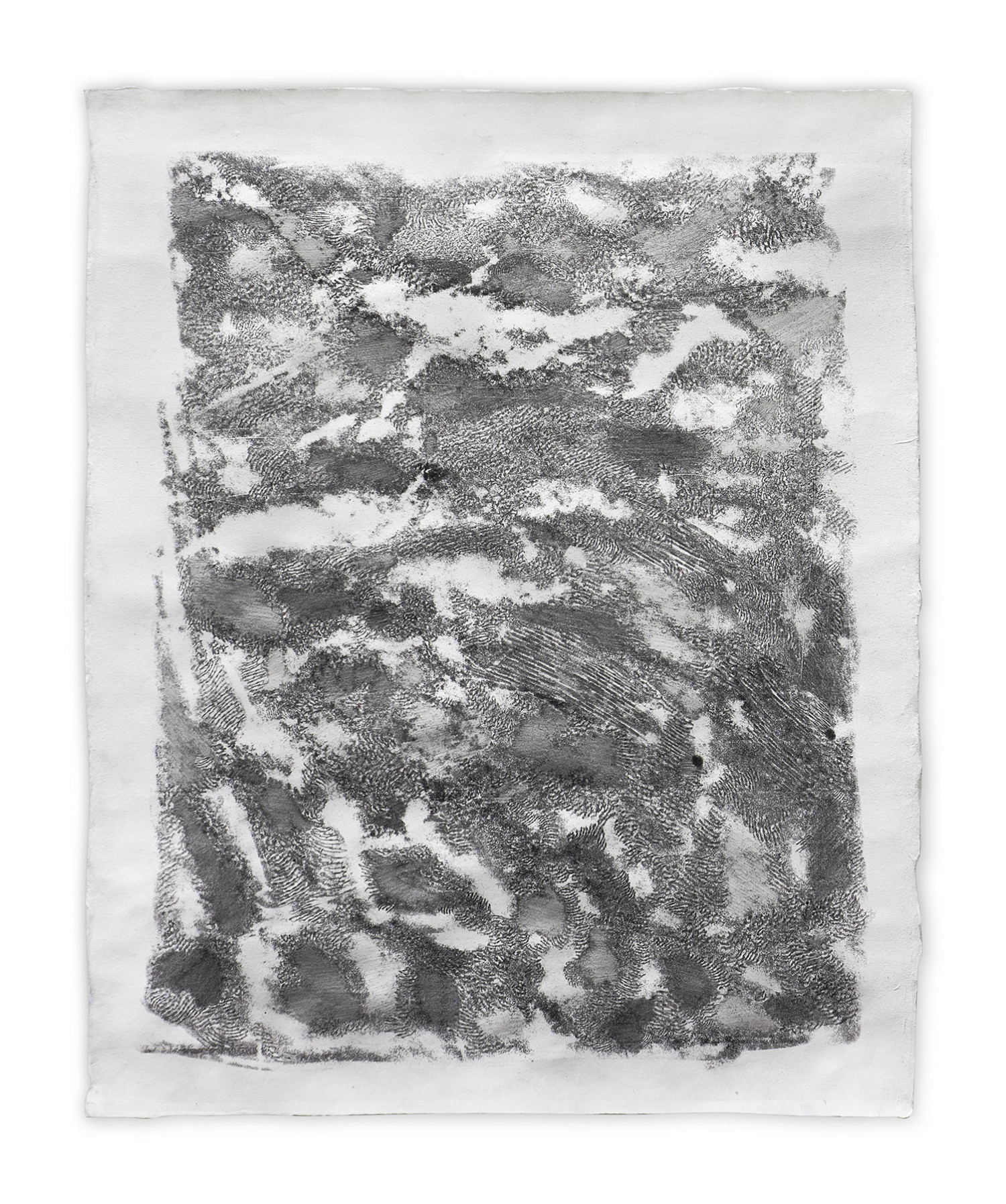 En tanto que extensión en el espacio, la línea también es extensión en el tiempo. No el tiempo en el sentido de medida de una duración finita, sino más bien el tiempo que sencillamente prosigue ad infinitum. En los nuevos dibujos de Mariana Sissia, que ella nombra Paisaje mental, lo que encontramos no es un lugar o un punto, sino una concepción en la mente. En esta serie, la artista persigue un orden que no se puede captar de manera apresurada. Es el orden de las emociones y las sensaciones, algo similar al contacto sensible con la propia piel, el propio cabello, el propio cuerpo. Los dibujos de Sissia no son una “cosa”, sino un estrato de una cosa que propone un orden, un orden que el papel es capaz de contener. Su espacio es al mismo tiempo físico y abstracto. Se trata tanto de la materia como de los materiales, y de escapar, precisamente, de la condición de cosa. Con una dedicación, una paciencia y una cautela extremas, Sissia crea dibujos sobre papel de arroz a la manera de grandes rollos. Este material, muy fino, conocido por su uso en la pintura china del siglo XIX, es delicado y carece de textura. Sissia comienza por aplicar el frottage, una técnica gráfica desarrollada en 1925 por el surrealista alemán Marx Ernst, a fin de crear una base para un mayor refinamiento. Sissia frota superficies texturadas, tales como pisos de cemento, paredes y piedras, que a continuación intensifica marcándolas con grafito de diferentes escalas. Su método, al que ella se refiere como “temperamental”, construye lentamente un paisaje que se va desplegando según la energía diaria de la artista. Estas escenas apasionadas son investigaciones del material, que asemejan masas de aire o trozos de cielo, es decir, dominios etéreos. Los cielos de Sissia recuerdan aquellos que el artista argentino Osvaldo Bony creaba a mediados de los años 70. Aunque pueda parecer un tópico banal, el cielo se convierte en una intensa metáfora de la libertad. Sissia, al igual que Bony, desprende los cielos, separándolos del infame mundo de las figuras. Aquí, la materia alcanza la clase de complejidad que encontramos en el cerebro humano. De manera comparable a esa postura filosófica o creencia que sostiene que la consciencia es una cualidad universal de todas las cosas, Sissia intenta extenderse ella misma a todo lo que la rodea, y trabajar con los problemas y acontecimientos que ello le presenta. Se torna consciente de su propio cuerpo, en una forma que nada tiene que ver con la idea aceptada del autorretrato, sino con el cuestionamiento y la observación de las sensaciones. La ausencia de figuras y de cuerpos humanos en los paisajes provoca una sensación de “pérdida de contacto”, no sólo con nosotros mismos y con los demás, sino también con la cultura de la que formamos parte.
