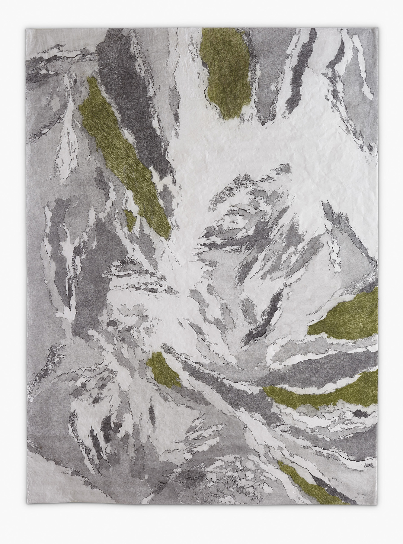 YKW: Me parece apropiado esto que mencionas sobre la noción de paisaje, y el continuum de la ora de Mariana. Pareciera que a medida que ella avanza en su actividad, la obra se va volviendo cada vez más un fluir de la conciencia, y que por eso tampoco puede haber un principio o fin en este magma del devenir. Como si ya no se representara nada más que cierta duración, o cierto modo de existir. Las rocas, las montañas van cediendo sus límites, se vuelven porosas, hasta ser meras inscripciones en rollos que se cuelgan del techo y que requieren una lectura vertical, muy diferente a la horizontalidad con que acostumbramos a mirar un paisaje.