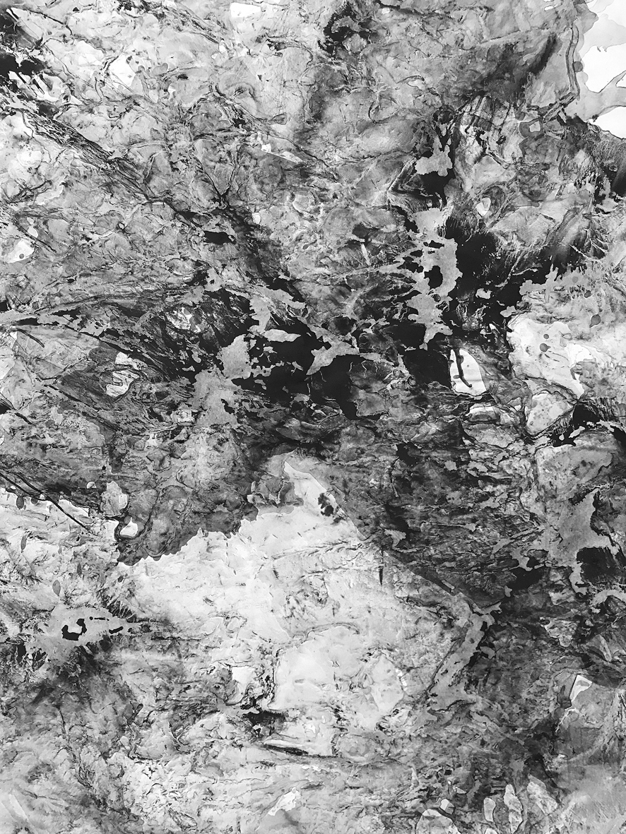No tengo un plan antes de empezar o, más bien, el plan es no tener un plan [...] dejar que [el dibujo] tome forma a través del rastro que el frottage deja sobre el papel. Sobre la base de la intuición, decido sobre qué superficie frotar el papel, en qué ubicación exacta hacer el frottage, qué espacios dejar en blanco y cómo interpretarlo. Lo concibo como un “guión” que toma forma aleatoriamente, una forma que interpreto de acuerdo con mi estado emocional.