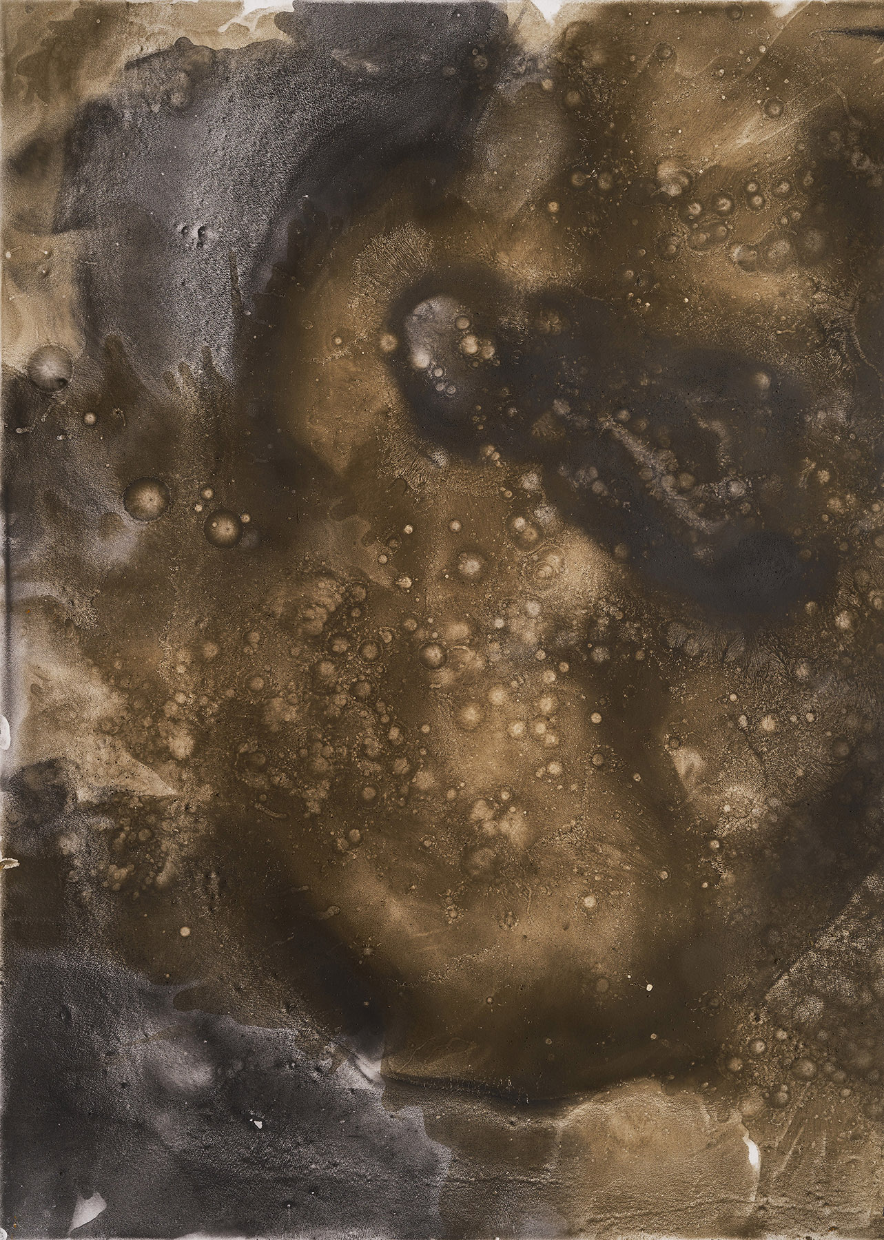 El manejo técnico de Sissia es impecable. Tiene tal confianza en los materiales que lo que aparece es la libertad para usarlos y para entenderlos. El derrame de los solventes sobre el papel y las diferentes texturas del grafito son su caligrafía típica y hace aparecer espontáneo lo que es fruto de un trabajo casi científico. Cada uno de los vertidos y de los pliegues en el papel responde a un registro minucioso y anotado que es más de alquimista que de dibujante. El clima que se genera responde un poco a este esoterismo virtuoso y es difícil que el visitante no lo experimente al recorrer la obra.