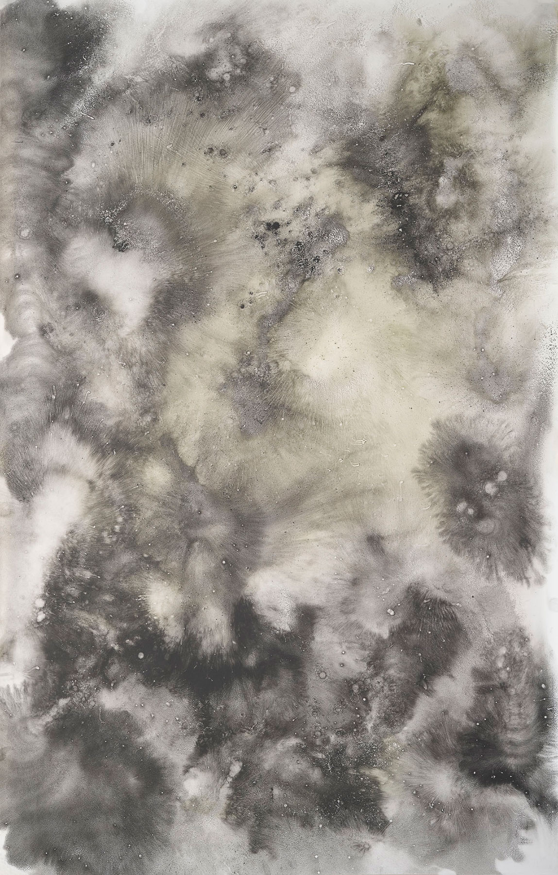 Aun cuando exploramos este entorno complejo con un intrépido sentido de la aventura, nos vemos llevados a una lectura más psicológica del paisaje. Delicados dedos parecen haber impreso sus huellas en mil lugares sobre la superficie de cada dibujo, pero, ¿cómo leemos la evidencia que han dejado? Asimismo, la confluencia de forma y textura se resuelve, a veces, en un test de Rorschach casero y meticuloso. Con mano traviesa, Sissia crea confusión entre el aleatorio sentido asociativo de la mancha de tinta y la significación visual, cuidadosamente articulada, asignada por un artesano. Las materias primas del mundo desbordan de sentido, cultural, espiritual y personal: estanques de agua se funden en figuras, ventanas manchadas parecen revelar repentinamente la huella de la mano de Jesús. Las superficies de los dibujos de Sissia parecen ser el perfecto reflejo de cien formas de significación. Cada día, lo que nos rodea parece preguntarnos: “¿Qué ves? ¿Qué te cuenta lo que ves? ¿Cómo lo lees?”. La artista parece sugerir que, en estos dibujos, esa contemplación es compartida: ella nos invita al fluir de su conciencia, que el trazo y la textura han vuelto visible. Como Hamlet, observamos las nubes que pasan, asiéndonos de cualquier sentido que puedan ofrecernos antes de que desaparezcan de la vista; reconociendo que todo podría ser una aparición producida por una mente activa, pero que no por ello es menos significativo.