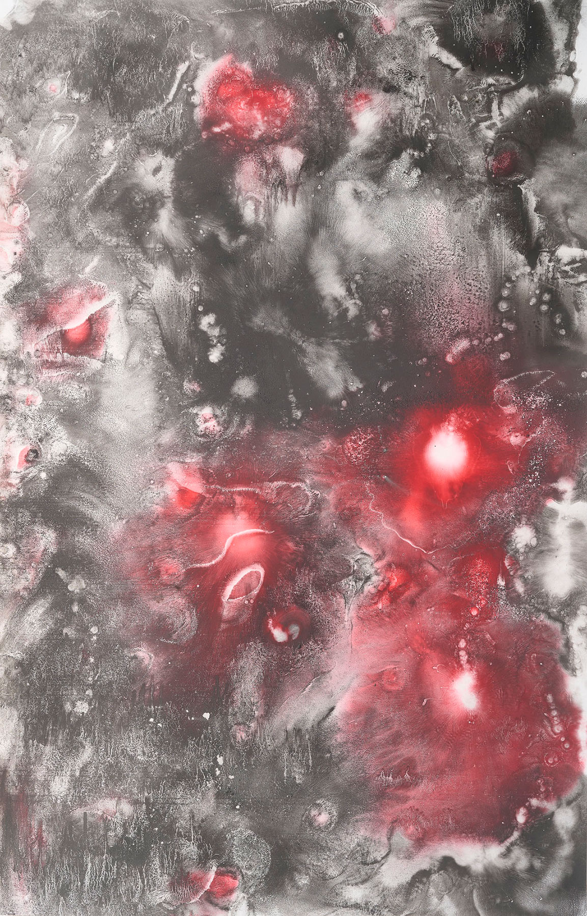 Grafito, pastel, cera y betún sobre papel.