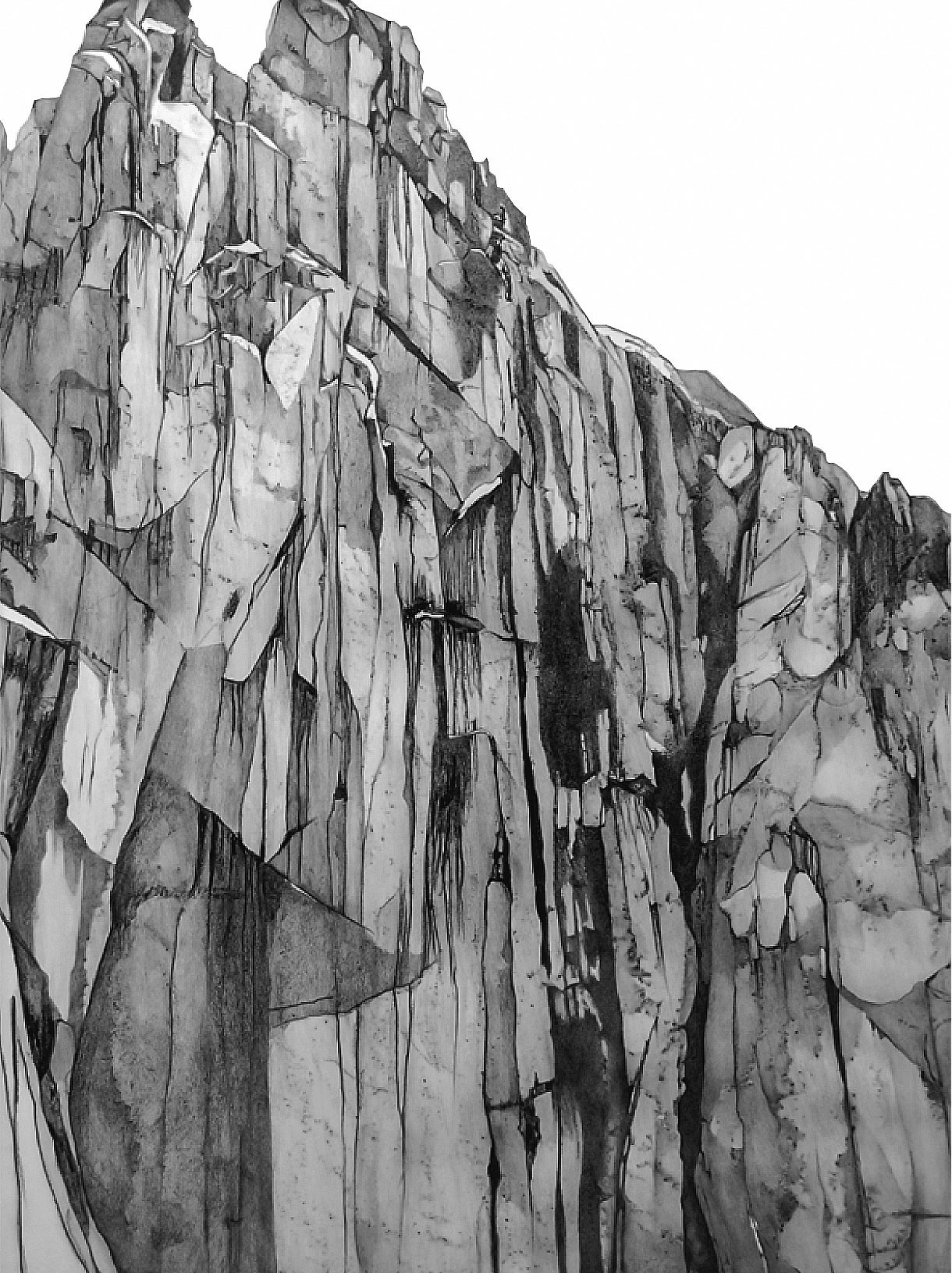 TDS: Si, yo diría que cada vez dibuja más momentos que figuras, instancias temporales de estar en ese momento y de esa manera. Lo que va predominando es una imagen más austera y menos representativa, las obras se vuelven más un registro de texturas, una vista aérea cada vez más distante donde ya no se ve la montaña si no su textura. Por momentos son una acumulación de restos y de repente, son como pequeñas excavaciones en un terreno absolutamente árido, donde ya no tiene valor hacer ninguna representación puntual. Por eso se excede y cada vez se vuelve más inapropiado hablar de paisajes. Porque lo que ha venido haciendo, es ir demoliendo todo resto reconocible de representación y lo predominante es el vínculo fuerte con la materia y la representación de la experiencia real de representar. Como una experiencia desnuda del dibujar mismo, cada vez más cruda, más directa y sin rotura, diría. Cada vez se refuerza la idea del continuum, donde ya casi no queda tiempo para el detalle.