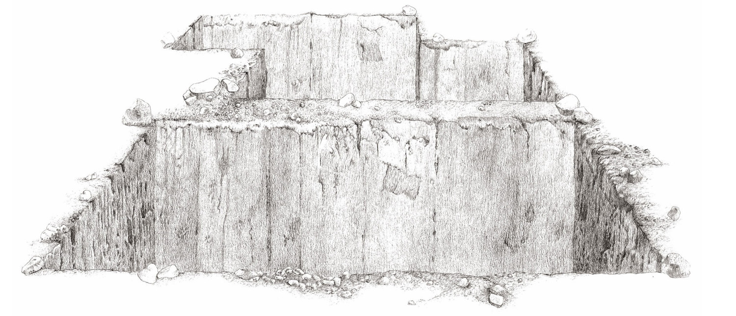 Entre otras tantas escenografías de similar constitución y poéticamente afines urdidas por la autora, la excavación parece aludir a la idea del dibujo como la faena ardua, extenuante y radicalmente física que se ejerce sobre una superficie. Se trata aquí de la operación de avanzar moliendo la materia de ese primer estrato exterior, en busca de un determinado plano más recóndito, dejando un sedimento como parte del mismo fenómeno, de una misma figura, que es no solo una presencia formal específica, sino una instancia de la retórica visual. Un sedimento que, a veces, amenaza con volver a ocluir, a sofocar, la visibilidad, la respiración de lo ya revelado.
