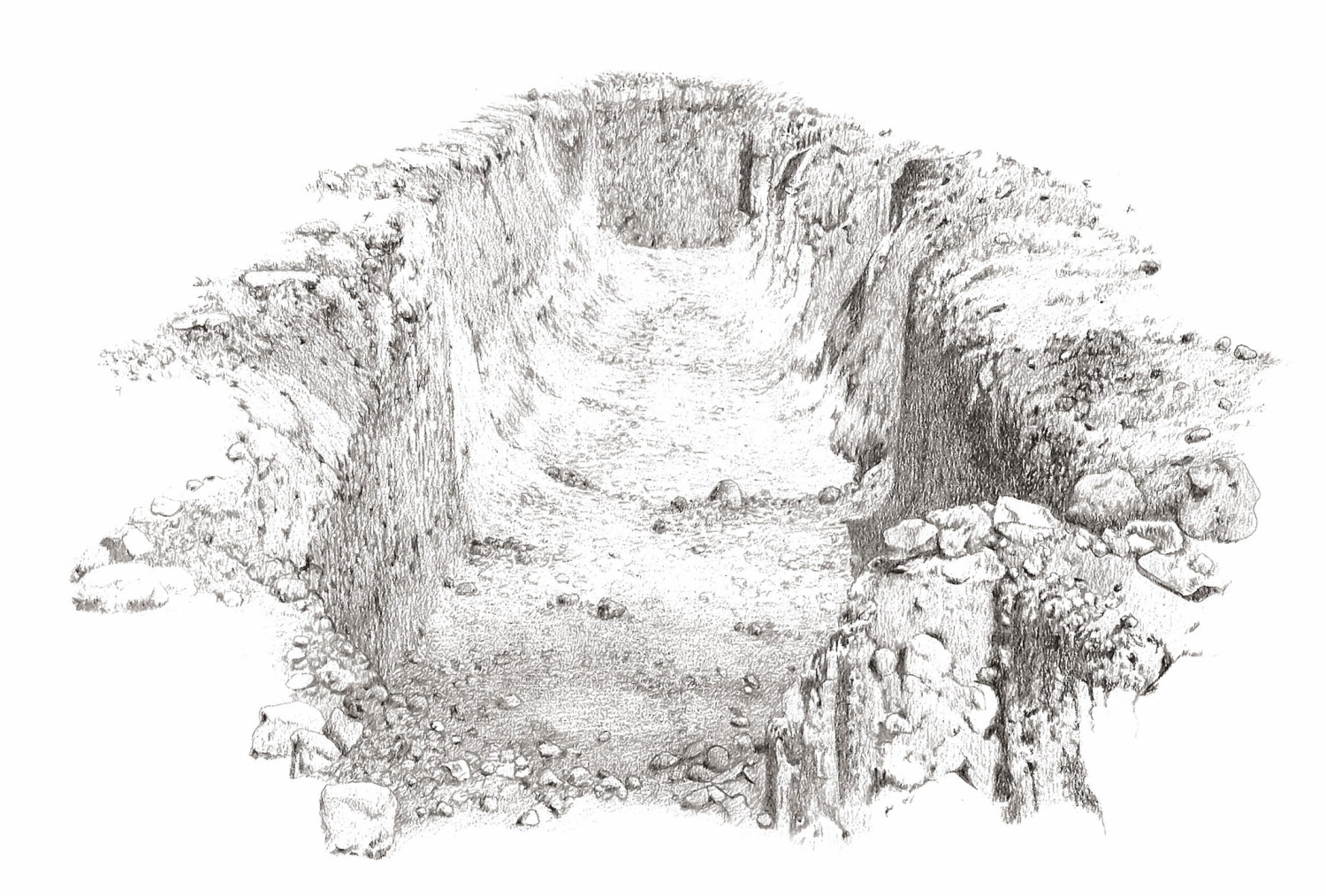 Por otra parte, y en cuanto al espíritu que parece animarlas, las agudas incisiones terráqueas y las regulares hendiduras aluden a una manualidad precaria, primitiva, y a la vez a una economía de medios mayor, ya en escala industrial o proyectual. Ambos factores hipotéticos convergen en la regularidad geométrica del trazado de las plantas arquitectónicas, las comprometen convirtiéndolas en abismales hundimientos, y a los tranquilizantes cimientos, en colapsos ortogonales de la corteza terrestre. Hasta se incluye, con una impasividad escalofriante, la figura del sepulcro, como parte de lo que podría concebirse como una referencia a algún catálogo virtual de los usos culturizados de la tierra.