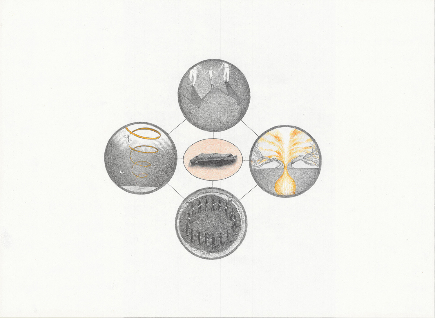 Grafito y lápiz de color sobre papel.