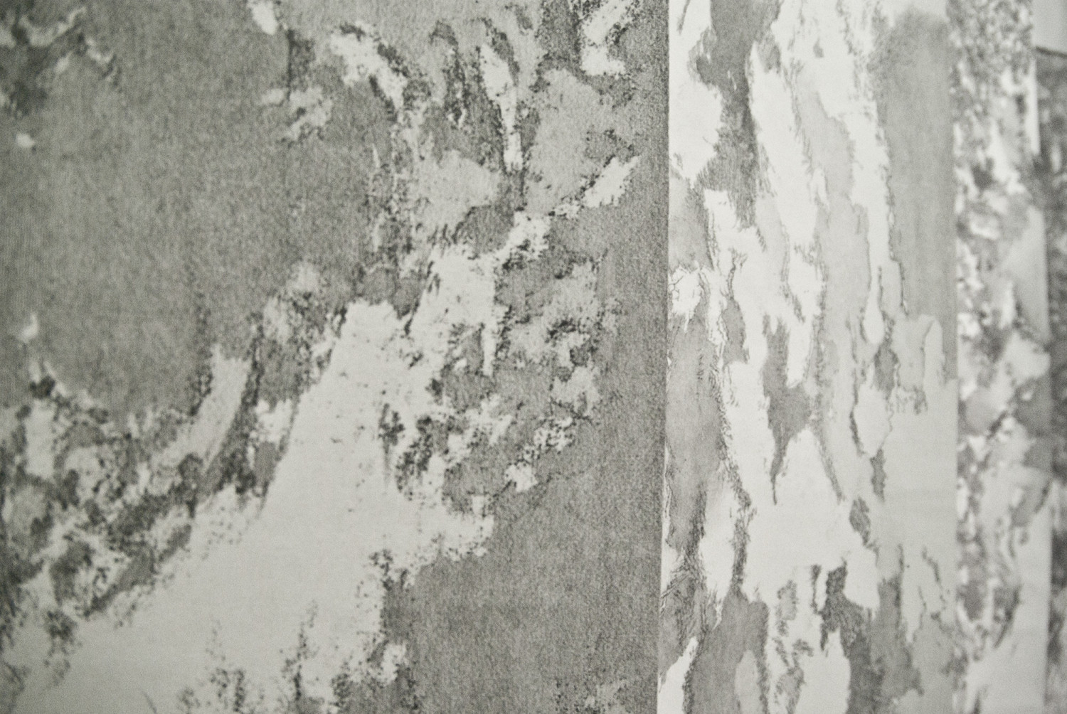 El enorme pliego tiene, además, más de 2 metros de altura, está trabajado en fragmentos con una doble técnica que combina el grafito con solventes, resultando distintas intensidades y matices. La lectura de la totalidad del ciclo es la de un diario íntimo o la de un periódico. Distintas emociones, distintas noticias, énfasis diferentes, conformando una totalidad hecha de retazos.